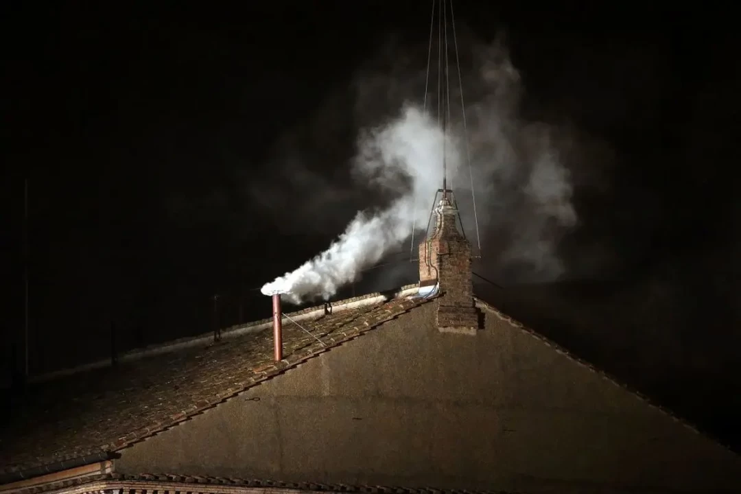 رسانه ها در بیرون کلیسای در بسته منتظر اعلام نتیجۀ انتخاب پاپ هستند. در این زمان، یکی از مقامات واتیکان برگه های رای را با مواد شیمیایی مخصوصی می سوزاند و باعث می شود دود سفیدی از دودکش کلیسا بلند شود. دود سفید به این معنی است که پاپ جدید انتخاب شده و دود سیاه نماد این است که کاردینال ها به توافق نرسیده اند.