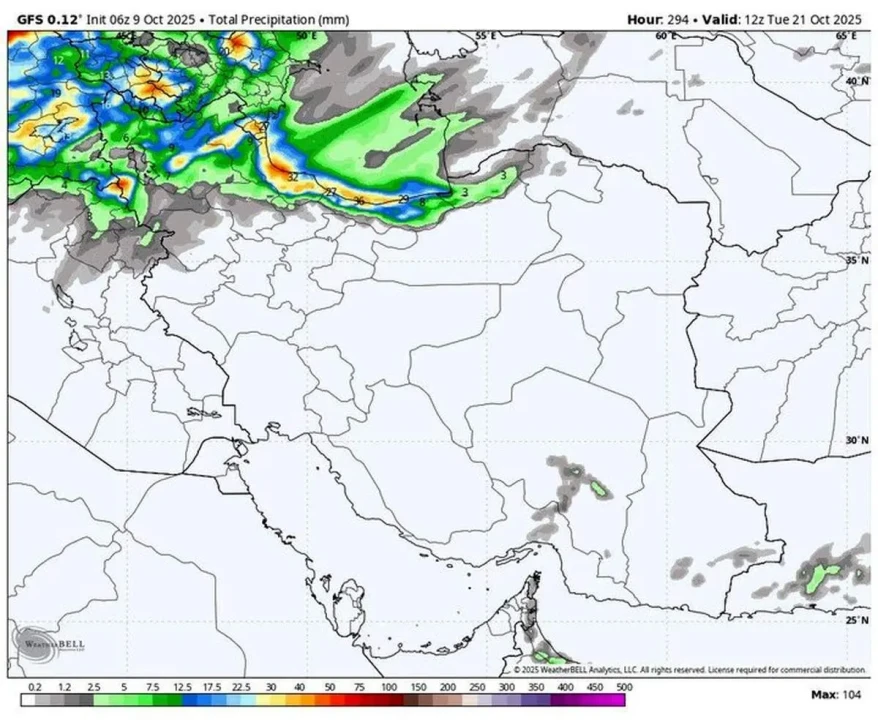 ضیائیان یادآور شد: بر اساس نقشه‌های پیش‌بینی، روز جمعه (25 مهر) استان‌های گیلان، مازندران، اردبیل، شمال شرق آذربایجان شرقی و ارتفاعات شمال و شرق هرمزگان و روز شنبه (26 مهر) نیز گیلان و غرب مازندران تحت تأثیر این سامانه بارشی قرار می‌گیرند.