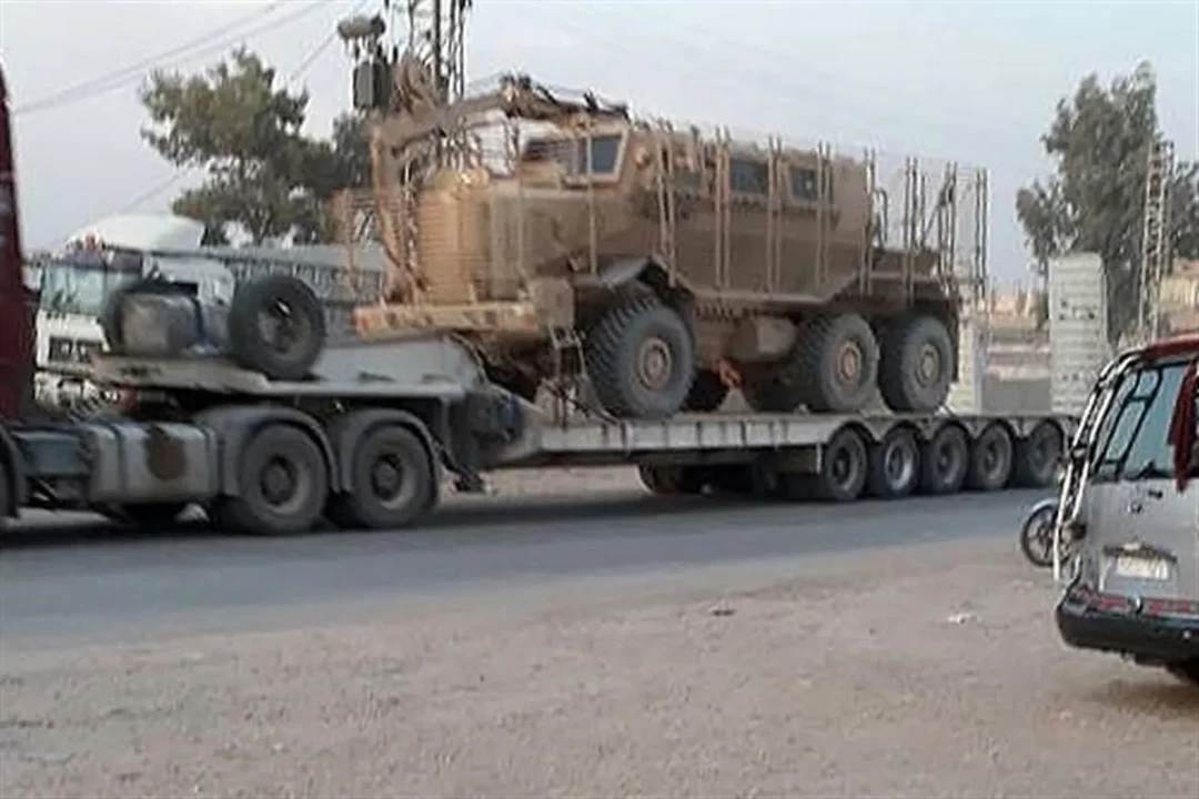 ستونهای بزرگ مملو از انواع ادوات رها شده از سوی نیروهای ارتش عربی سوریه در جاده قابل مشاهده است.