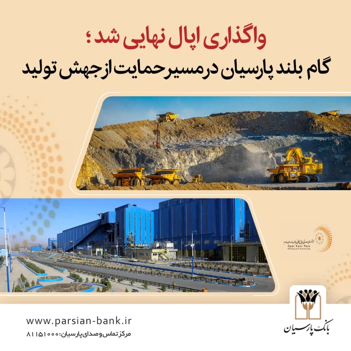 در مزایده مورخ 16 مهر 1403 موضوع واگذاری 100 درصد سهام شرکت صنایع معدنی کانی‌سازان کیمیا (سهامی خاص) بانک پارسیان دارنده سهام شرکت فرآوری معدنی اپال کانی پارس (سهامی عام) به تعداد 18.145.102.191 سهم معادل 90.72 درصد از کل سهام شرکت، را پس از انجام مراحل قانونی و بازگشایی پاکات در تاریخ 17 مهر 1403 به شرکت فولاد مبارکه اصفهان(سهامی عام) و شرکت گسترش صنایع معدنی کاوه پارس(سهامی خاص) به مبلغ 66.3 هزار میلیارد تومان واگذار کرد. گفتنی است؛ سهم الشرکه شرکت فولاد مبارکه اصفهان پنجاه‌وپنج درصد و سهم الشرکه شرکت گسترش صنایع معدنی کاوه پارس چهل‌وپنج درصد از مشارکت مذکور است.