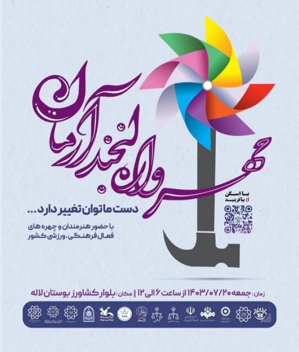 وی افزود: این برنامه در روز جمعه مورخ 20 مهرماه 1403 از ساعت 6 صبح الی 12 ظهر با حضور هنرمندان و چهره‌های فعال فرهنگی و ورزشی کشور در بوستان لاله واقع در بلوار کشاورز اجرا می‌شود.